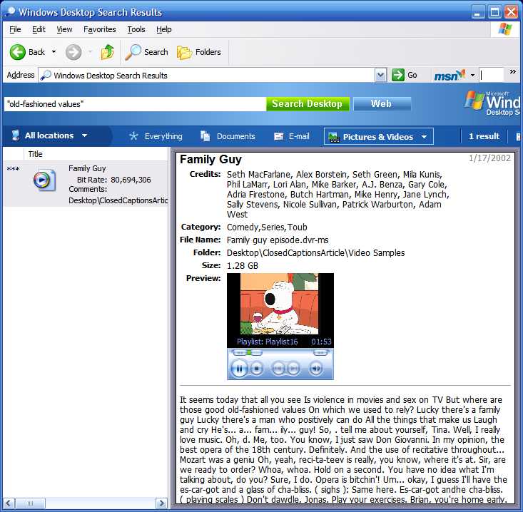 it can index all of the closed captions contained in my recorded DVR-MS files. I