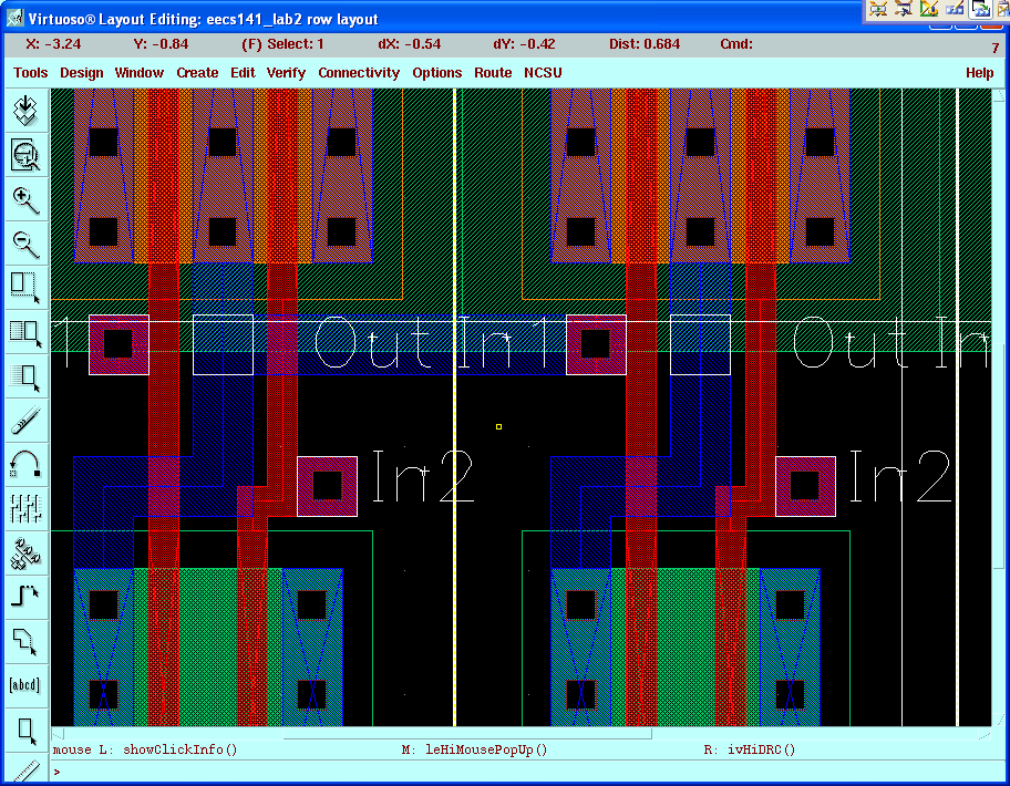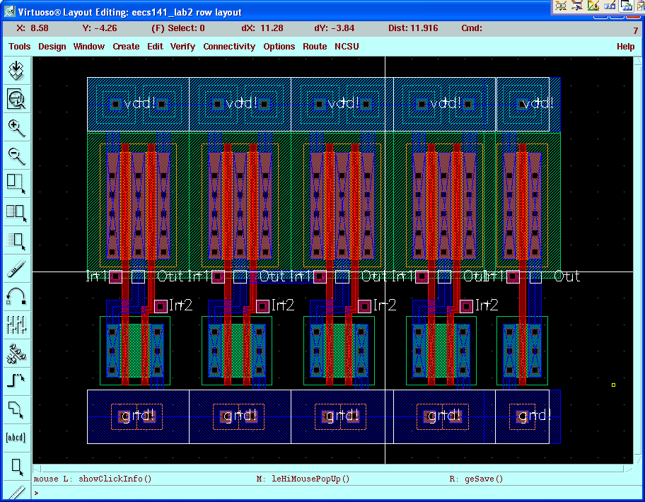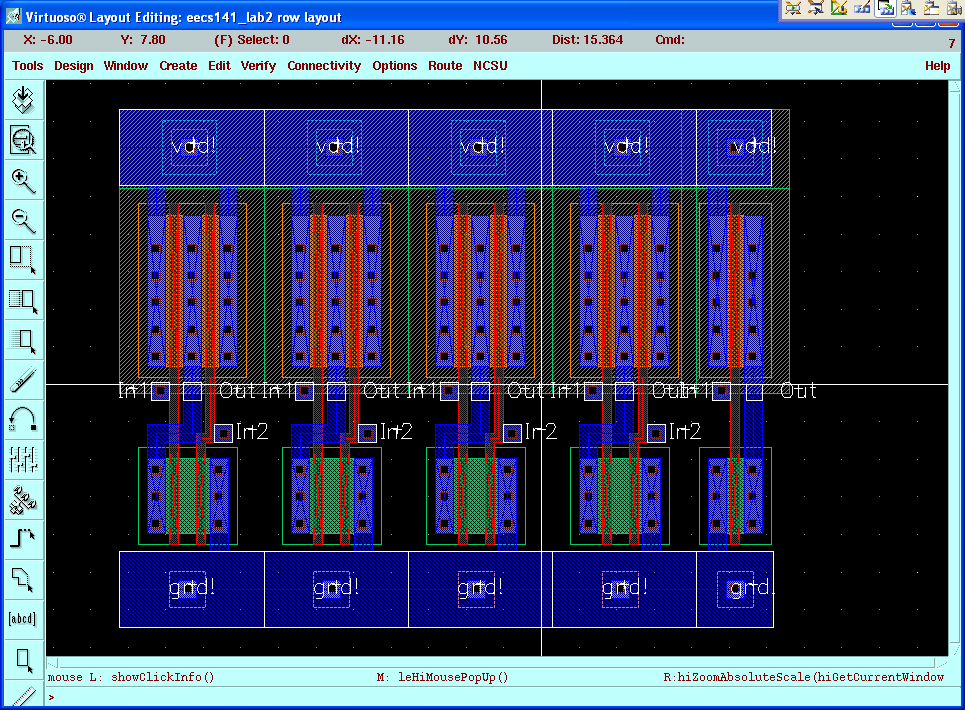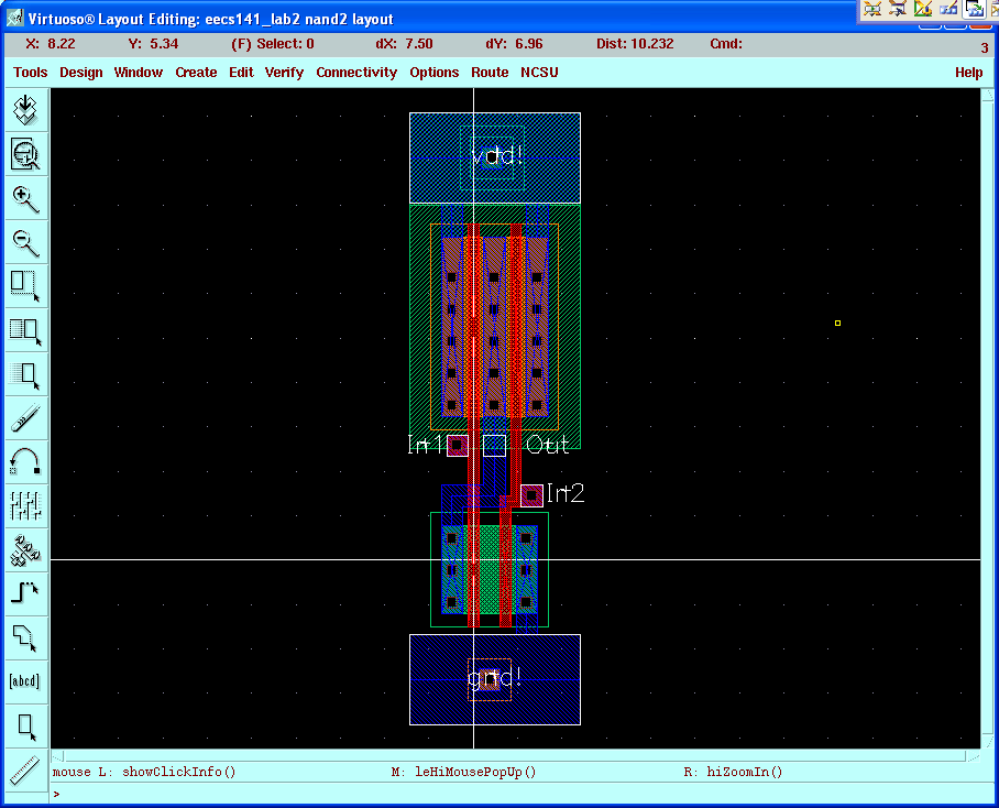 (vdd! gnd! Out In1 In2). After you are done, your layout should look like