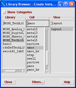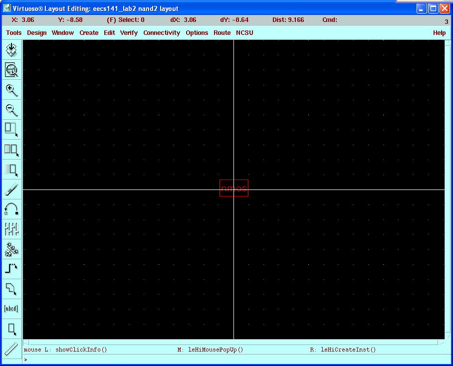 cell. Simply type in "nand2" under cell name and "layout" under view. Hit