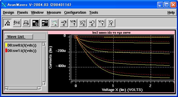 .DC Vds 0 2.5 0.1 sweep Vgs 0 2.5 0.5