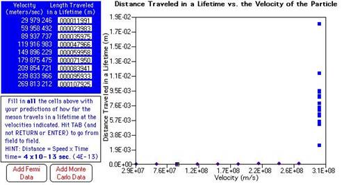 The data of distance traveled versus velocity assuming constant lifetime is filled out in the following table.