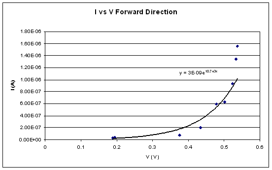 From the forward bias graph (Graph I), the turn on voltage is about 0.530.02V