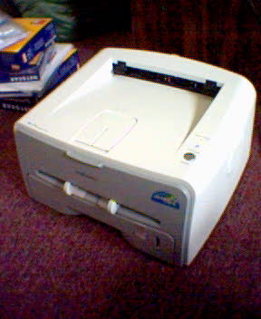 I kind of like my new printer. $79.99 laser printer, which takes about 5 seconds to print a page of text. I use it to print small text, usually my note, and the detail quality of laser printer is great.